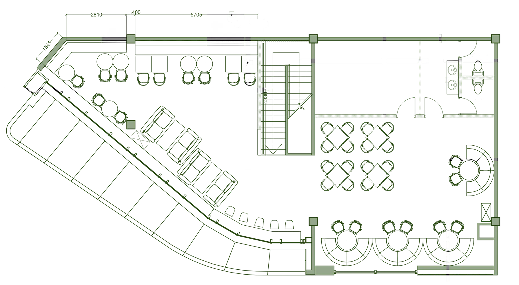 The first floor expands into additional lounge spaces, providing exclusivity, while the overall design enhances seamless circulation and spatial depth, elevating the social dining experience.